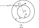(3) 如图,为一圆柱中空玻璃管,管内径为R1,外径为R2,R2=2R1.一束光线在圆柱横截面内射向玻璃管,为保证在内壁处光不会进入中空部分,问入射角i应满足什么条件?