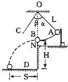 2、实验题 用如图所示装置来验证动量守恒定律,质量为mA的钢球A用细线悬挂于O点,质量为mB的钢球B放在离地面高度为H的小支柱N上,O点到A球球心的距离为L,使悬线在A球释放前伸直,且线与竖直线夹角为