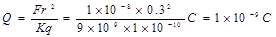 D.4F 参考答案:由库仑定律的公式F=kqQr2知,将它们所带的电量都变为原来的2倍,它们之间的距离不变,则们之间的静电力大小变为原来的4倍.故D正确,A、B、C、错误. 本题解析: 本题难度:一般 5、计算题 (8分)一个很小的小球带有电量Q,在距离球心30㎝处的A点放了一个试探电荷q = ?1×10-10C,q 受到的电场力为1×10-8N,方向指向球心。求: 参考答案:(1)100V/m(2) 本题解析:(1)由电场强度的定义式得 本题难度:简单 |