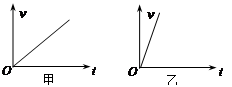 4、选择题 如图甲乙所示是表示两个物体P与Q的速度—时间图象, 则(?)