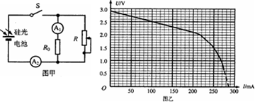 2、实验题 2011年日本发生严重核辐射泄露事故,使得人们开始将目光再次投入到更为安全的太阳能技术上。硅光电池是太阳能电池的一种,某同学为了测定某种硅光电池的电动势和内电阻,设计了如图甲所示电路,图中与A.串联的定值电阻的阻值为R0,电流表视为理想电表,在一定强度的光照下进行下述实验: