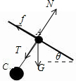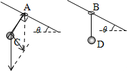 1、填空题 如图所示,两个与水平倾角同为θ的滑杆上分别套有质量同为m的A、B两个圆环,两个圆环上分别用细线悬吊着两个质量同为M的物体C、D,当它们沿滑杆向下滑动时,A的悬线与杆垂直,B的悬线竖直向下,则C环运动的加速度为___________;B环受到的摩擦力为___________。
