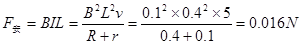 ![]() 参考答案:在0-2Rv时间内,线框进入磁场的过程,磁通量增大,根据楞次定律分析可知,感应电流沿逆时针方向,为正; 本题解析: 本题难度:一般 4、填空题 如图所示,电阻为0.1Ω的导体ab沿光滑导线框向右做匀速运动,线框中接有电阻R=0.4Ω,线框放在磁感强度B=0.1T的匀强磁场中,磁场方向垂直于线框平面,导体ab的长度l=0.4m,运动的速度υ=5m/s,线框的电阻不计,则施加的外力的大小F=?N,外力做功的功率为?W。 参考答案:0.016,0.08 本题解析:所施加的外力与安培力平衡,所以外力的大小F= 本题难度:简单 5、简答题 如图所示,宽L=1m的足够长的U形光滑金属导轨固定在磁感应强度大小B=1T、范围足够大的匀强磁场中,磁场方向垂直导轨平面向上、导轨的倾角θ=30°.一根质量m=0.2Kg,电阻R=lΩ的金属棒ab垂直于导轨放置.现用一平行于导轨向上的牵引力F作用在直棒ab上.使ab棒由静止开始沿导轨向上运动,运动中ab棒始终与导轨接触良好,导轨电阻不计,重力加速度g取10m/s2.求: 参考答案:(1)ab棒先做加速度逐渐减小的加速运动,即图线的斜率逐渐减小,最终做匀速直线运动,即图线与时间轴平行,v-t图象如图所示. 本题解析: 本题难度:一般 |