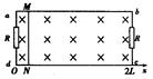 5、选择题 如图,矩形裸导线框abcd的长边长度为2L,短边的长度为L,在两短边上均接有电阻R,其余部分电阻不计。导线框一长边与x轴重合,左边的坐标x=0,线框内有一垂直于线框平面的匀强磁场,磁场的磁感应强度为B。一质量为m、电阻也为R的光滑导体棒MN与短边平行且与长边接触良好。开始时导体棒静止于x=0处,从t=0时刻起,导体棒MN在沿x轴正方向的一拉力作用下,从x=0处匀加速运动到x =2L处。则导休棒MN从x=0处运动到x=2L处的过程中通过电阻R的电量为(?)
