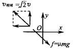 v,方向与x轴成1350。滑动摩擦力方向总与相对运动方向相反,即与x轴成-450。如图所示。由于物块受到的外力为恒力,它相地于传送带做的是匀减速直线运动,至速度减为0,就不再受摩擦力作用,将与传送带保持相对静止。现在再转换到以地面为参考系:物块先做初速度为v(方向沿+y方向)、加速度为μg的匀变速曲线运动,加速度方向始终与皮带边缘成–45?夹角;然后物块随皮带一起沿+x方向做速度为v的匀速直线运动。