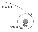 本题解析:航天飞机在飞向B处的过程中,飞机受到的引力方向和飞行方向之间的夹角是锐角,月球引力做正功,A对;由运动的可逆性知,航天飞机在B处先减速才能由椭圆轨道进入空间站轨道,B 对;设绕月球飞行的空间站质量为m,