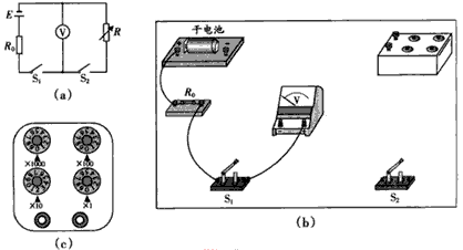 A、检查并调节电压表指针指零;调节电阻箱,示数如图(c)所示,读得电阻值是____________;