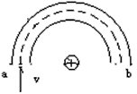 2、选择题 如图所示,有一弯管ab,其中心线是半径为R的一段圆弧,弧的圆心处有一个点电荷Q,有一束带负电的粒子流从a端的中点射入,恰能沿中心线通过弯管的粒子应为
