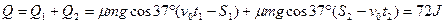 5、计算题 如图,传送带与水平面倾角θ=37°,以10米/秒的速率逆时针转动,在传送带上端A处轻轻放一质量m=2千克的物块,它与传送带间的摩擦系数μ=0.5。若两轮间传送带的长度L=29米。(g取10米/秒2, sin37°=0.6,cos37°=0.8)求:(1)物块从传送带上端A运动到 B处所用时间和到B处时的速度大小。(2)物块从传送带上端A运动到 B处的过程中摩擦力对物块所做的功。(3) 物块从传送带上端A运动到 B处的过程中物块和传送带所产生的总热量。
