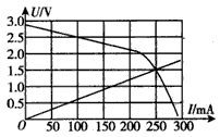 (2)根据测量数据作出该硅光电池的U-I图象如图乙所示,由图象可知:该电池的电动势E=___V,在流过电流表A2的电流小于200 mA的情况下,此电池的内阻r=____Ω;