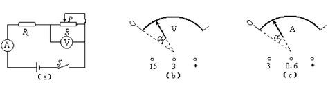 (二)某同学利用图(a)所示的电路进行电路实验.电路中R1的阻值为20Ω,滑动变阻器R上标有“50Ω 2A”字样.闭合电键S,将滑片P从最左端向右移动到某位置时,电压表、电流表的示数分别为2伏和0.2安.当不断向右移动滑片P,使得电压表与电流表指针偏离零刻度线的角度恰好均为指针满偏角度的1/4时(两表满偏角度相同),如图(b)、(c)所示.则此过程中,两表指针偏转的方向相________(填“同”、“反”);该电源的电动势为_____________V,内阻为_________W.