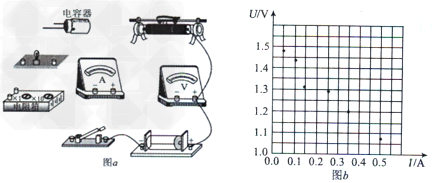 (2)若根据测得的实验数据,在U-I图像上描点如图b,请用作图法求出干电池的电动势和内阻。E=? V,r=____Ω。
