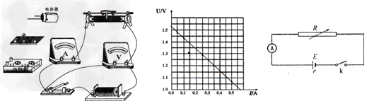 4、实验题 某同学拟用电流表和电压表测定电源电动势和内电阻,备有:干电池一只(电动势约为1.5V,内阻约2Ω),电压表一只(0~3V,内阻约3kΩ),电流表一只(0~0.6A,内阻约1.0Ω),滑动变阻器有R1(0~10Ω,2A)和R2(0~100Ω,0.1A)各一只,开关一个,导线若干。