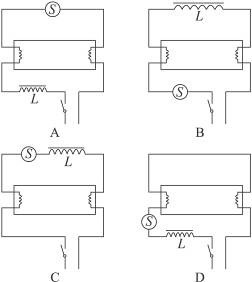 5、选择题 在下列四个日光灯的接线图中,S为启动器,L为镇流器,正确的是(?)