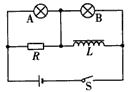 ![]() 2、选择题 如图所示的电路中,线圈L自感系数较大,电阻不计,A,B是两只完全相同的灯泡,当开关S闭合时,下面可能发生的情况是 3、选择题 如图所示的电路中,L是自感系数很大的、用铜导线绕成的线圈,其电阻可以忽略不计,开关S原来是闭合的.当开关S断开瞬间,则( ) |