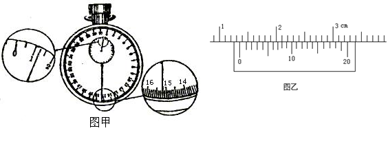 (1)为了减小测量周期的误差,计时开始时,摆球应是经过最?(填“高”或“低”)点的位置,且用秒表测量单摆完成多次次全振动所用的时间,秒表的示数如图甲所示,则秒表的示数为t=?s