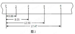 ②甲同学通过对小车所牵引纸带的测量,就能得出小车的加速度a。图2是某次实验所打出的一条纸带,在纸带上标出了5个计数点,在相邻的两个计数点之间还有4个点未标出,图中数据的单位是cm。