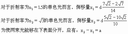 上式表明,在入射角相同的情况下,不同波长的单色光的侧移量不同.在本题中: