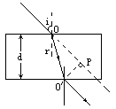 [方法一] 如图所示,表示一条单色光线以入射角i入射到两面平行的玻璃砖的上表面,经上表面和下表面两次折射后的光路图.并设玻璃砖对该单色光的折射率为n,玻璃砖的厚度为d.由图可以看出,