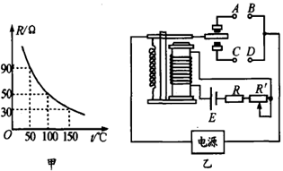 | 如图(甲)所示为热敏电阻的R—t图象,图(乙)为用此热敏电阻R和继?【电磁学】(一)