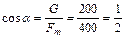 (2)当球对绳的拉力为400N时,绳与墙壁的夹角为α,有