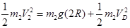 ? ①?( 2 分) 由小球恰好通过最高点D点可知,重力提供向心力,即 ②?(1 分 ) 由①②得 =5gR?故 R="0.045" m.?(2 分) 本题考查动能定理和动量守恒定律的结合,在小球摆到最低点的过程中只有重力做功,机械能守恒,由此可求得小球在最低点的速度大小,两球碰撞前后动量守恒,找到初末状态根据动量守恒定律列公式可求得小球2的末速度,小球2在轨道上运动时机械能守恒,在D点小球2刚好通过最高点,由此求得在D点的速度,结合机械能守恒可求得半径大小