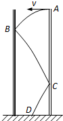 2、简答题  已知如图,内壁光滑的薄壁圆钢管竖直固定在水平地面上.钢管的高为h=5.0m,横截面直径为d=2.0m.一只小球从钢管顶端的A点以初速度v0沿钢管顶面圆的直径方向抛出,运动过程中依次跟钢管内壁的B、C两点相碰(碰撞中没有动能损失,碰撞时间极短可以忽略不计),然后恰好落在底面圆的圆心D处.求: