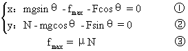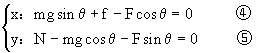 N-Fsinθ-mgcosθ="0" ②