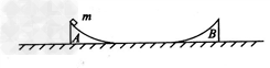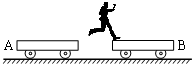 3、简答题 如图所示,光滑的水平面上静止停放着质量均为m的A、B两辆小车,A车上静止站着一个质量为