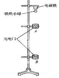 ①将光电门A、B和电磁铁安装在支架上,调整它们的位置使三者在一条竖直线内.当电磁铁断电释放小球后,小球能顺利通过两个光电门.