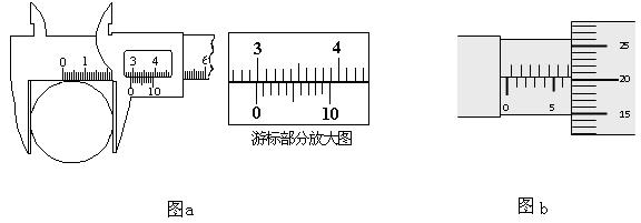 4、填空题 在探究小车速度随时间变化的规律的实验中,用接在50Hz交流电源上的打点计时器,得到以下一段纸带如下图,A、B、C、D分别为每隔5个点取的计数点,则 5、填空题 读出图中游标卡尺(图a)(10分度)和螺旋测微器(图b)的读数: |