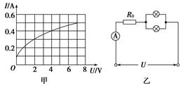 (2)如图乙所示,将两个这样的电灯并联后再与10 Ω的定值电阻R0串联,接在电压恒定为8 V的电路上,求通过电流表的电流值以及每个灯的实际功率.