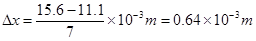 (2)利用上述测量结果,经计算可得两个相邻明纹(或暗纹)间的距离Δx=_________mm;