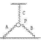 2、选择题 如图所示,重为G的质点P与三根劲度系数相同的轻弹簧A、B、C相连,C处于竖直方向,静止时相邻弹簧间的夹角均为1200。已知弹簧A、B对质点P的弹力大小各为G/2,弹簧C对质点P的弹力大小可能为(?)