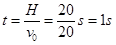 5、计算题 从20m高的平台边缘有一小球A自由落下,此时恰有一小球B在A球正下方从地面上以20m/s的初速度竖直上抛。求: