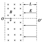1、计算题 (12分) 如图所示,有界匀强磁场的磁感应强度B=2×10-3 T;磁场右边是宽度L=0.2 m、场强E=40 V/m、方向向左的匀强电场.一带电粒子电荷量q=-3.2×10-19 C,质量m=6.4×10-27 kg,以v=4×104 m/s的速度沿OO′垂直射入磁场,在磁场中偏转后进入右侧的电场,最后从电场右边界射出.(不计重力)求: