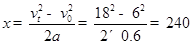 5、填空题 火车沿平直铁路匀加速前进,加速度为0.6m/s2,车头通过某一路标时速度6m/s,当车尾通过该路标时速度变成18m/s,则火车的长度为?m
