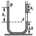 ![]() 参考答案:A、注入水银前:对于C、D管中的压强P=P0+ρgh1 ,又P=PA-ρgh3,则得p0+ρgh1=PA-ρgh3,得A内气体的压强为PA=P0+ρgh1+ρgh3.故A错误; 本题解析: 本题难度:一般 2、计算题 在竖直放置的U形管内由密度为ρ的两部分液体封闭着两段空气柱,大气压强为P0,各部分长度如图所示,求A、B气体的压强。