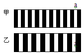 4、选择题 在双缝干涉实验中,图甲是用绿光进行实验时,屏上观察到的条纹情况,a为中央亮条 纹,图乙是换用另一种颜色的单色光进行实验时,屏上观察到的条纹情况,a为中央亮条纹,则以下说法中正确的是(?)