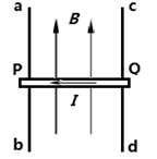 1、选择题 如图所示,两平行导轨ab、cd竖直放置在的匀强磁场中,匀强磁场方向竖直向上,将一根金属棒PQ放在导轨上使其水平且始终与导轨保持良好接触。现在金属棒PQ中通以变化的电流I,同时释放金属棒PQ使其运动。已知电流I随时间的关系为I=kt(k为常数,k>0),金属棒与导轨间存在摩擦。则下面关于棒的速度v、加速度a随时间变化的关系图象中,可能正确的有