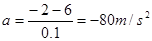 5、选择题 一个小球以6m/s的速度水平向右运动,碰到墙壁后经过0.1s后以2m/s的速度沿同一直线反弹。则小球在这段时间内的平均加速度为(?)?