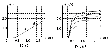 (4)比较图(b)中的1和5,指出在1.0~1.5 s时间段内,速度随时间变化关系的差异:______________________。