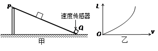 ,②W∝v,③W∝v 2。他们的实验装置如图甲所示,PQ为一块倾斜放置的木板,在Q处固定一个速度传感器(用来测量物体每次通过Q点时的速度),每次实验,物体从不同初始位置处由静止释放。