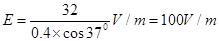 4、填空题 如图所示,匀强电场中a、b两点的距离为0.4m,两点的连线与电场线成37°角,两点间的电势差为32V,则匀强电场的场强大小为?V/m,把电量为10-10C正电荷从a点移到b点电势能将减少?J .