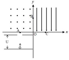 (2)如果去掉磁场只保留电场,该粒子仍从静止经电压U加速后沿水平方向进入这一区域,粒子在该区域右边界的射出点离O点的距离为多少?