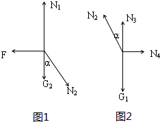 C、由上可知,地面对斜面的支持力N1=G2+N2cosα>G2,则斜面对地面的压力一定大于G2.故C错误.