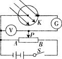 1、填空题 如图所示是使用光电管的原理图,当频率为v的可见光照射到阴极K上时,电流表中有电流通过。
