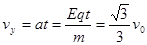 1、填空题 如图所示,质量为m、电荷量为q的带电粒子,以初速度v0垂直射入场强为E,方向竖直向下的匀强电场中,该粒子在电场中的经历时间_____后,其即时速度的方向与初速度方向成30?角.在这过程中粒子的电势能增量为_______.