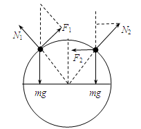 本题解析:分别对A、B两个相同的小物块受力分析如图,A受到重力,沿球面斜向上的摩擦力F1,垂直于球向斜向上的支持力,它的大小等于它对球面的压力N1,故F1=mgsinθ;N1=mgcosθ;