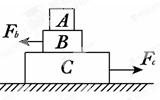 3、选择题 如图所示,物体A、B和C叠放在水平桌面上,水平力Fb="5" N、Fc=10 N,分别作用于物体B、C上,A、B和C仍保持静止。以f1、f2、f3分别表示A与B、B与C、C与桌面间的静摩擦力的大小,则( )